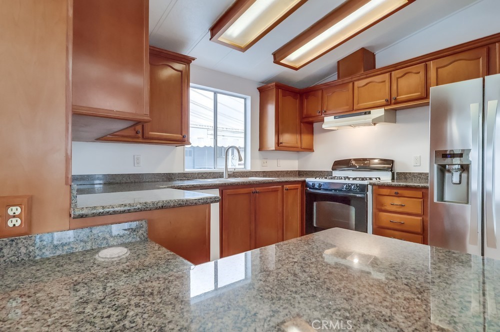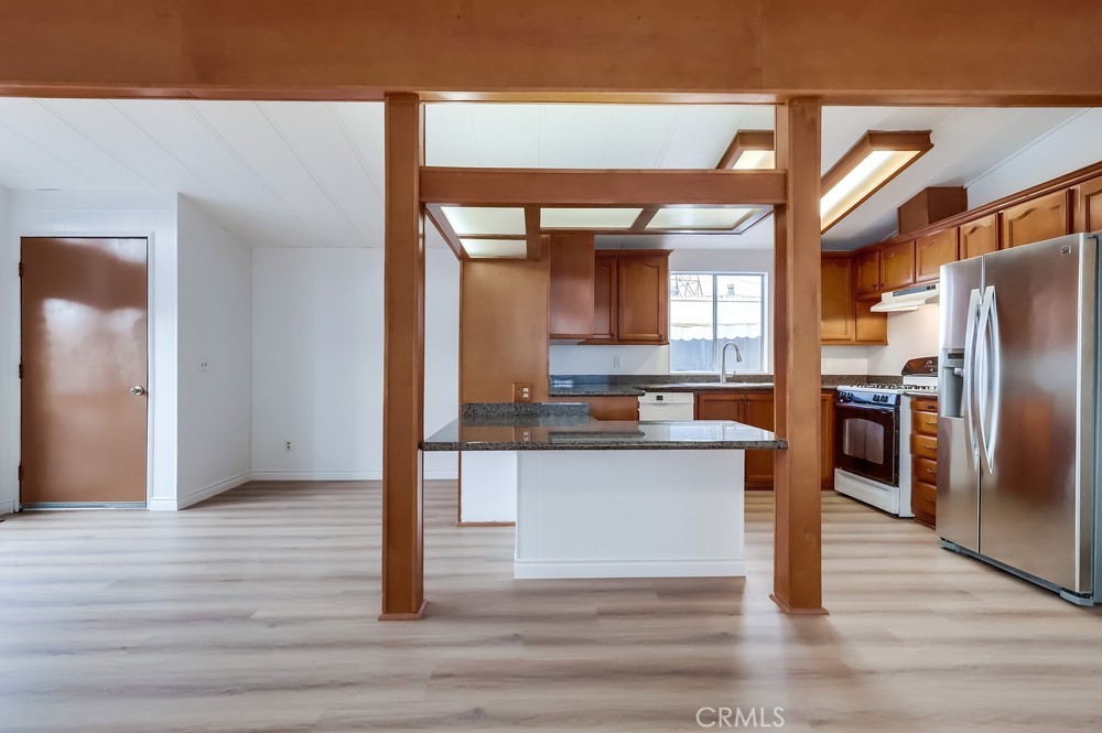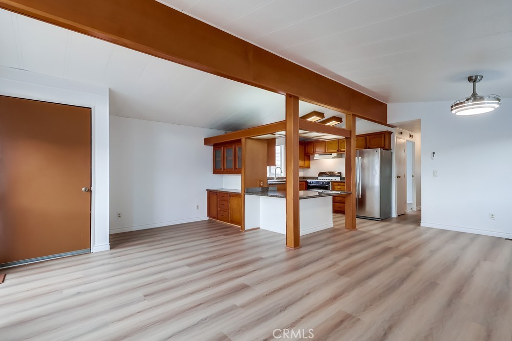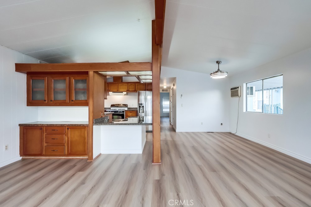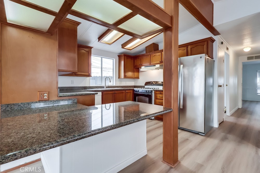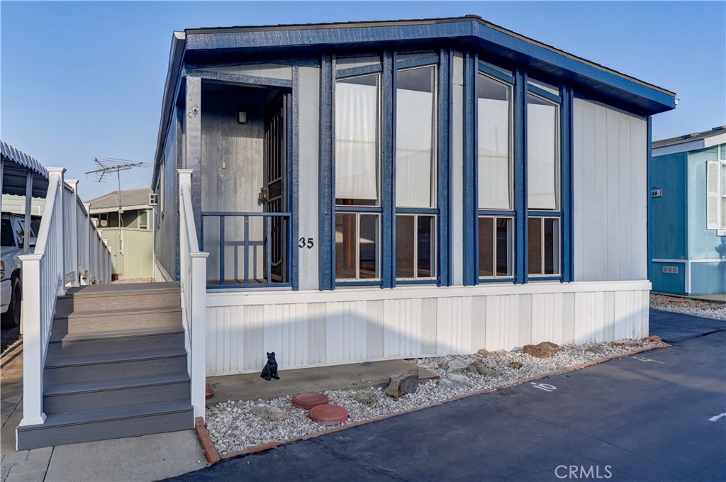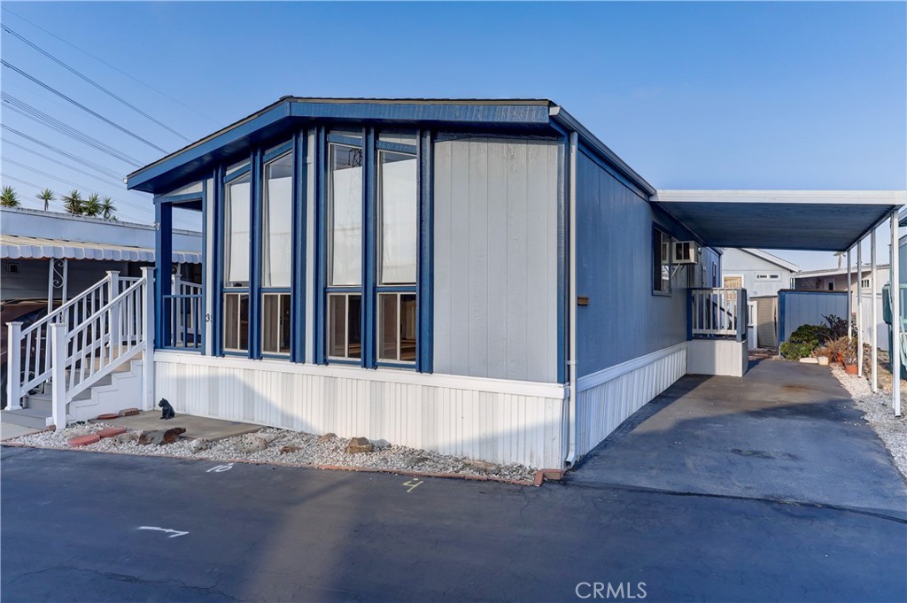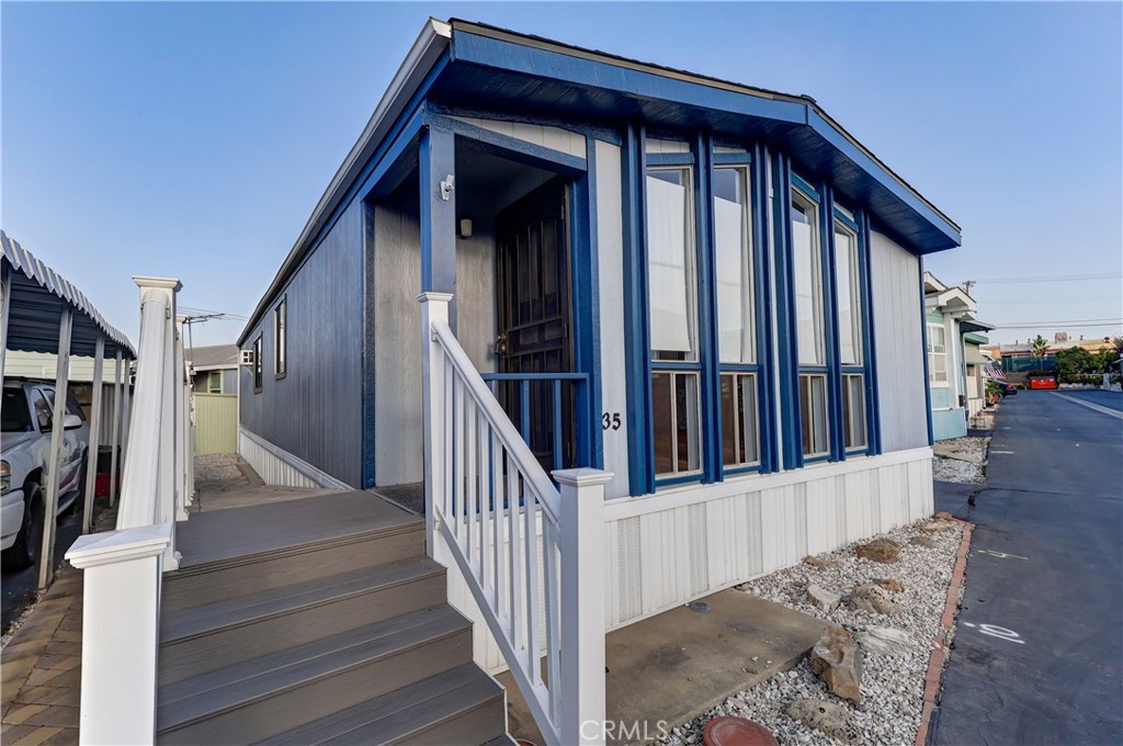Experience modern living in this beautifully updated 2-bedroom, 2-bathroom double wide trailer at Garden West Estates. Nestled in a serene and landscaped community, this home offers a harmonious blend of comfort and style. Spanning 960 square feet, the open layout boasts granite countertops and a stainless steel refrigerator in the kitchen. New Interior paint and vinyl plank flooring throughout. New side staircase ADA compliant and exterior paint and newer landscape with weed barrier. Relax in the comfort of individual AC units in each bedroom, or unwind in the living room under the updated light fixture with a 'hidden' ceiling fan. Newer laminate flooring and central heating create a cozy atmosphere throughout. Convenience is key with an in-unit washer and dryer, as well as additional laundry facilities available in the community building. Residents enjoy access to a clubhouse, in-ground pool, and outdoor lounge area, perfect for mingling with neighbors or enjoying quiet time. Parking is hassle-free with an attached carport. Ideal for those 55 and older, this senior community fosters a sense of belonging. Visit during business hours to meet with the park manager to check out all of the great amenities and explore all that this vibrant community has to offer. Your charming new home is waiting!