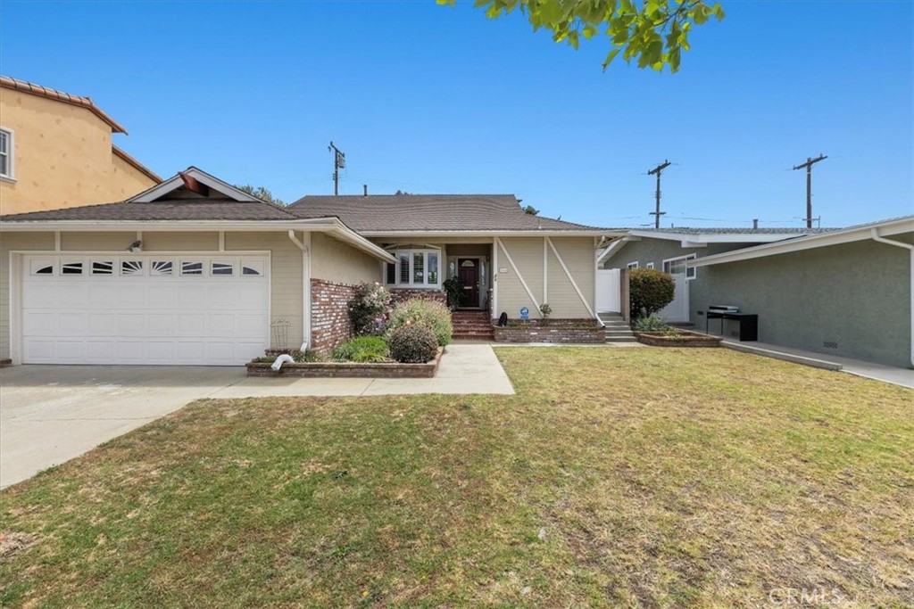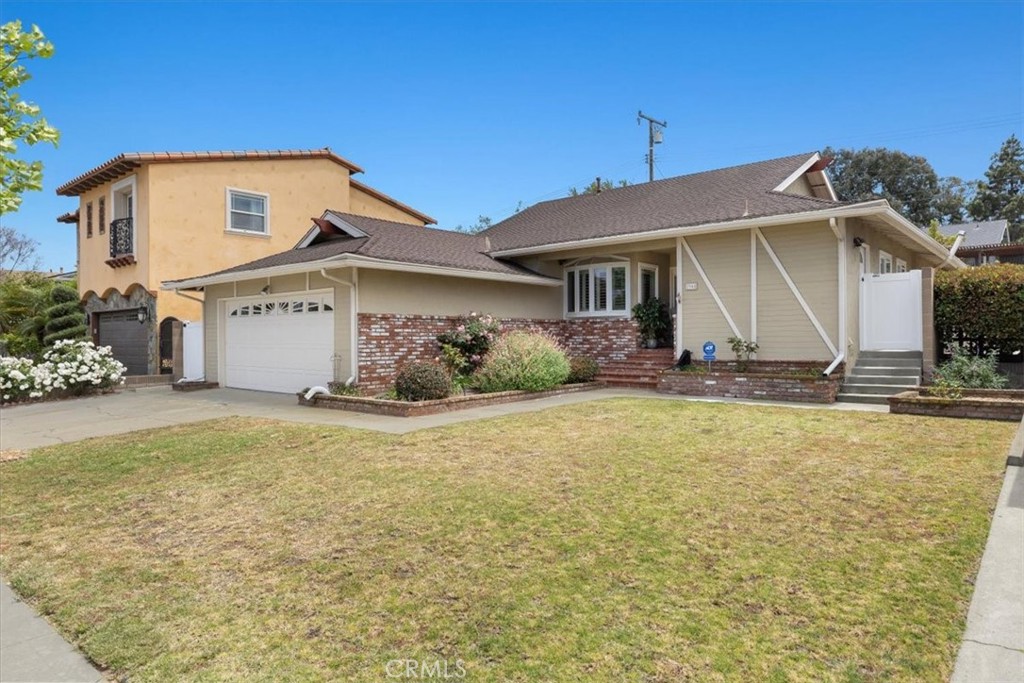 Welcome to 1968 W. 235th Place, a charming 4-bedroom, 2-bathroom single family home that's on market for the first time in 45 years! Nestled in a prime SE Torrance location, this 1668-square-foot single level gem is a perfect sized home with an attached 2 car garage with personal workshop and plenty of storage space above the rafters. Step inside to discover a formal entryway, tile flooring and a large hallway coat closet. Inside, the living room is very spacious and has newer vinyl plank flooring installed and has a brick gas fireplace with a mantel. The formal dining area shares the living room and is convenient for serving your meals. The kitchen has recessed lighting, tile countertops with plenty of storage in the oak cabinets & pantry with tile backsplash and granite countertops. Included are the matching white two door refrigerator with built in ice maker, gas cooktop, microwave and dishwasher. The laundry/utility room has a large capacity washer & gas dryer included and a service entry door. The primary bedroom suite has an attached 3/4 bathroom with a full size walk-in shower stall with vanity and tile countertop. There are two spacious closets with brand new wall to wall carpet installed plus the three generously sized bedrooms provide ample space for personalization including a home office. There is brand new wall to wall carpet installed in the back bedroom and matching vinyl plank laminate flooring in the two middle bedrooms. You'll love the custom white plantation shutters throughout the house for privacy or more natural light. This home also features a newer forced air gas furnace, dual pane windows and a composition shingle roof with rain gutters. The property's standout feature is the spacious grassy front yard and private fenced backyard with covered patio with brick flooring perfect for entertaining year round! There is white vinyl privacy fencing installed along the top of the south side block wall with a flower bed waiting for your green thumb and a Gardening Storage Shed is also included! The Seller just replaced the main sewer line and also relined to the main sewer connection under the street. This neighborhood is very peaceful and quiet and is conveniently located one block North of Sur La Brea Park and walking distance to local Torrance Public Schools Del Amo Mall, South Bay Beaches and the 110 freeway. Don't miss this opportunity to make 1968 W. 235th Place Yours! Hurry before it's gone!