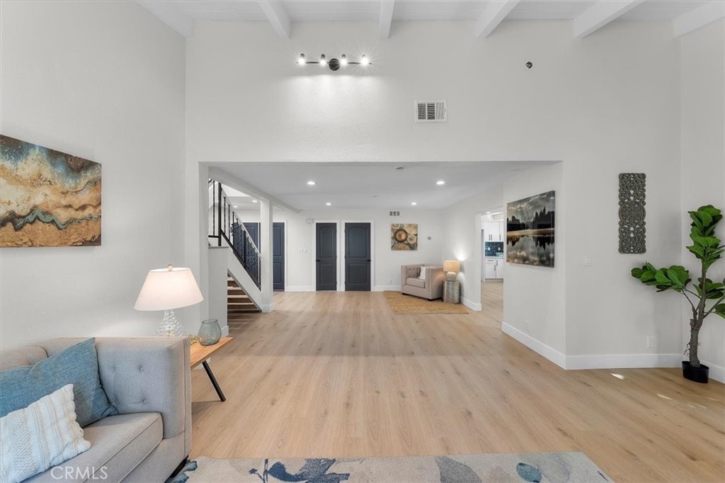 Other Interior Features: Beamed Ceilings, Breakfast Bar, Cathedral Ceiling(s), High Ceilings, Quartz Counters, Recessed Lighting, Unfurnished, All Bedrooms Up, Entrance Foyer, Primary Suite