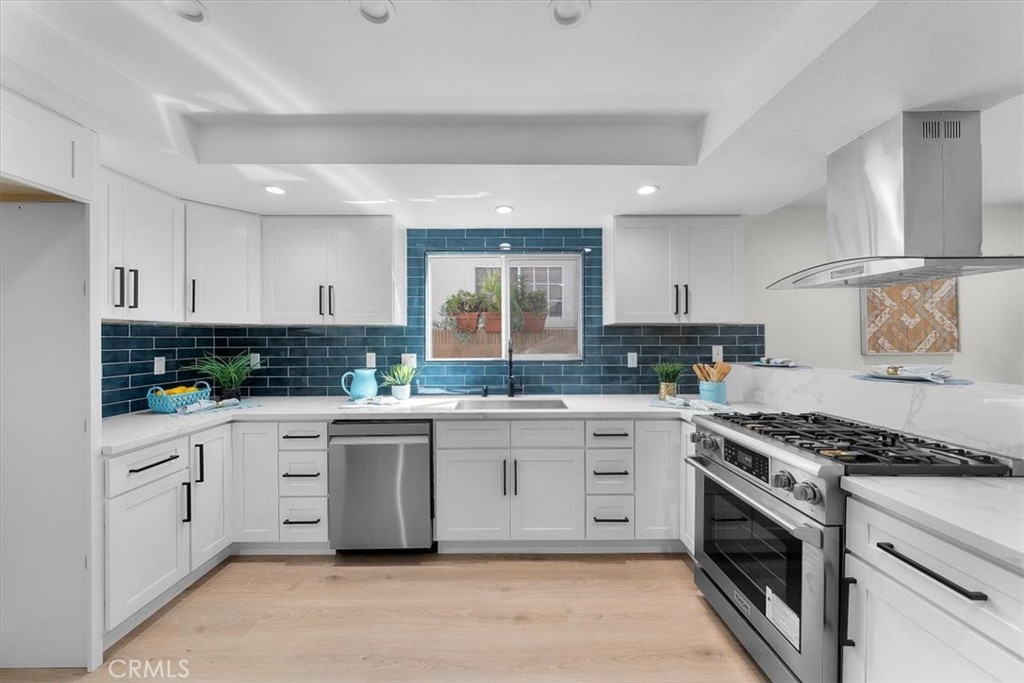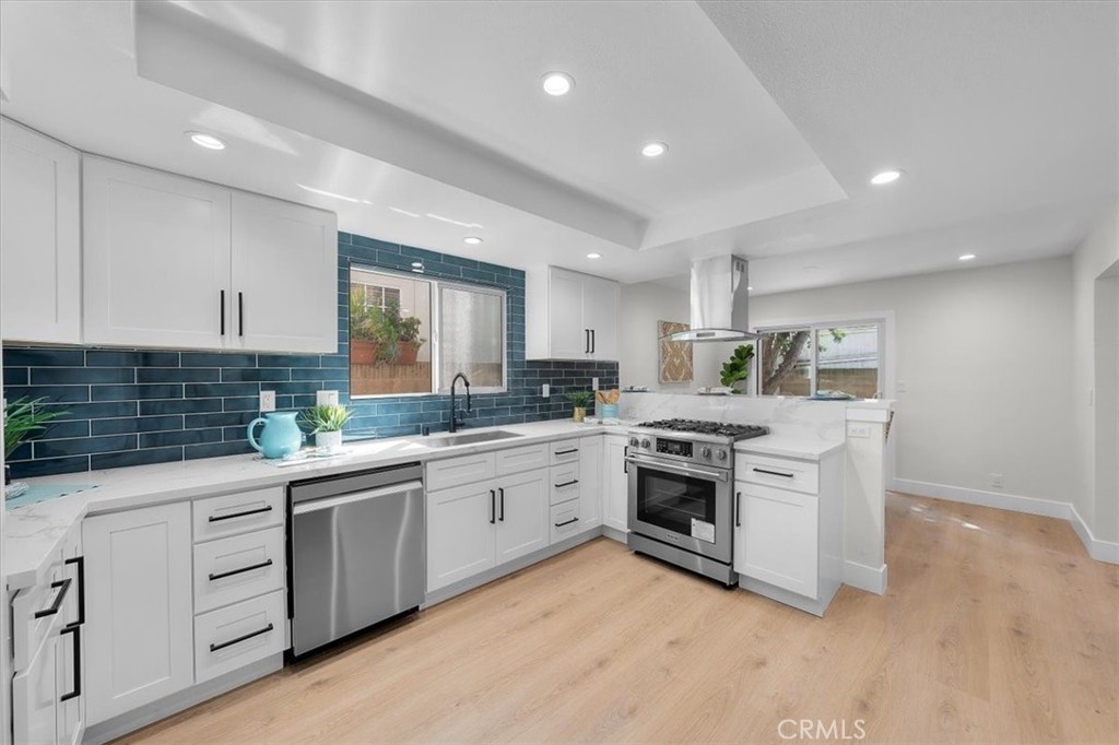 Welcome to 2120 Curtis Avenue, Unit 2, in beautiful Redondo Beach, CA! This completely remodeled and updated 4-bedroom, 2.5-bathroom home offers 1983 square feet of modern living space with luxury vinyl plank flooring throughout! Step inside to a formal living room featuring high beam ceilings, recessed lighting, a cozy gas fireplace with stone facade and mantle and sliding glass doors that fill the room with natural light. The remodeled kitchen is a chef's dream with quartz countertops, designer tile backsplash, a stainless steel gas stove, range hood and dishwasher, making meal prep a breeze. There is a 1/2 bath powder room with quartz countertop and sink conveniently located on the main level. The large upstairs primary bedroom suite has recessed lighting, two mirrored closet doors with an attached primary bathroom with quartz countertops and dual sinks and includes both a bathtub and separate shower stall with glass shower doors providing a luxurious retreat! All 3 upstairs guest bedrooms are spacious with mirrored closet doors and recessed lighting ensuring comfort and style throughout the home, in addition there is plenty of storage cabinets in the hallway with a guest batthroom with quartz countertop and sink and bathtub with glass shower door. Outside, the inviting private backyard is enclosed with brand new turf and new lush landscaping and is perfect for relaxation or entertaining your guests. Brand new vinyl fencing and gate add to the modern tranquility of your own backyard oasis! The attached 2-car garage has brand new epoxy flooring and offers ample storage and convenience, complete with a forced air gas furnace and a newer water heater. An additional parking space is available for guests, making hosting effortless. Enjoy the convenience of having a main level laundry room with washer & dryer hookups. This townhome has brand new dual pane windows throughout and is truly a blend of modern amenities and timeless charm. Close to local award winning Redondo Beach public schools and Manhattan Beach adjacent near local restaurants and shopping and I-405 and I-105 freeways for convenience. Don't miss out on this opportunity to own this completely remodeled and modern rear unit townhome!