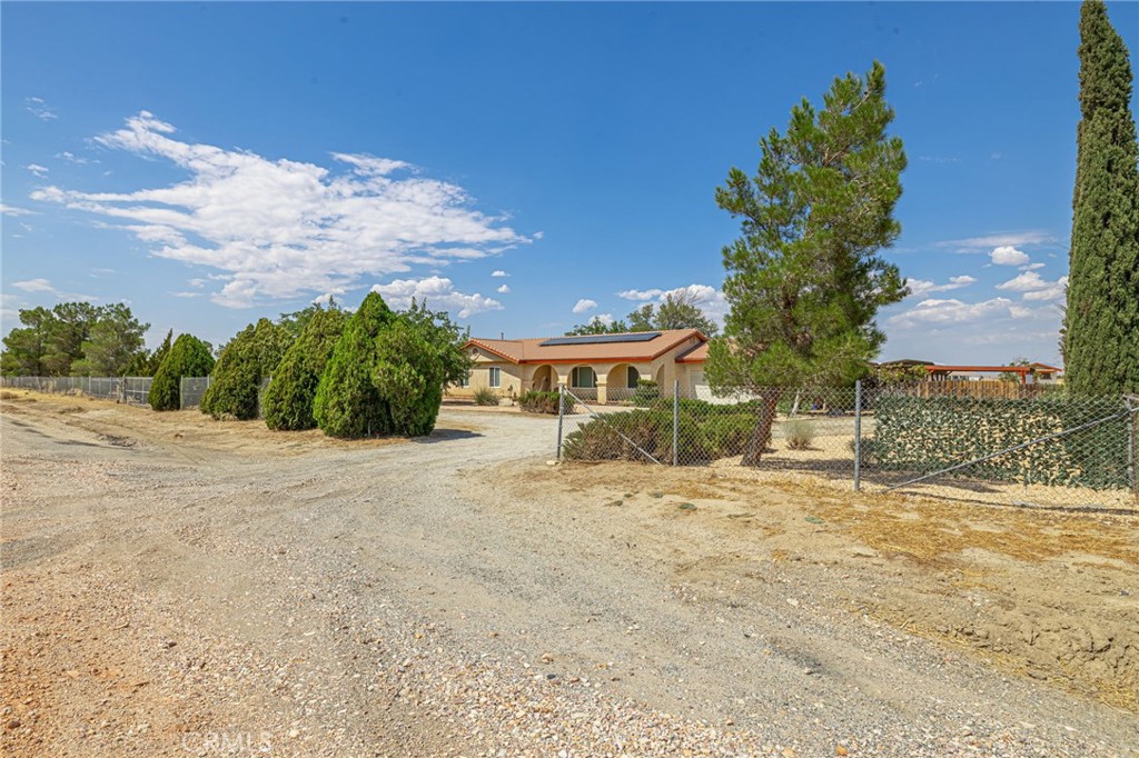 Welcome to your next dream country home at 8541 West Avenue D in Antelope Acres! This stunning single-level Spanish-style ranch house is nestled on a sprawling 2.18-acre lot, offering both privacy and ample space for all your hobbies and farming passions. With 2,239 square feet of living space, this home features 3 bedrooms and 2 bathrooms, providing a comfortable and inviting atmosphere. Step inside to find a spacious living room with formal dining area perfect for entertaining guests. The cozy family room, complete with a charming brick fireplace and ceiling fan is ideal for relaxing evenings. The kitchen has tile counters and has seating for 3 bar stools and is equipped with a propane stove, dishwasher, and microwave oven included, making meal prep a breeze. A dedicated laundry room comes with a washer and dryer included for your convenience. The primary bedroom suite also has a ceiling fan and boasts its own private bathroom with a walk in shower stall, ensuring a serene retreat with a 367SF attached patio room with a sliding glass door perfect for relaxing indoors and unwinding after a long day. Your guests will enjoy 2 spacious bedrooms also with ceiling fans and a large hallway lined closet and full hallway bathroom with bathtub and tiled countertop and sink. You'll enjoy the convenience of both tile and low-pile wall-to-wall carpeting throughout the home. Additionally, the freezer and primary bedroom set is included and other furniture is negotiable. Includes a solar energy system to lower your monthly energy costs with central air conditioning and forced air propane gas furnace, Outdoor enthusiasts will appreciate the vast lot size of 92,192 square feet, offering horse corral and cattle raising opportunities. Includes a chicken coop, storage sheds and a 2 RV covered parking barn, a separate rear carport and a 2-car attached garage and concrete driveway for extra parking. The septic tank was recently inspected and certified and pumped and ready for the new owner. This home is truly a unique find. Don't miss out on this incredible opportunity
